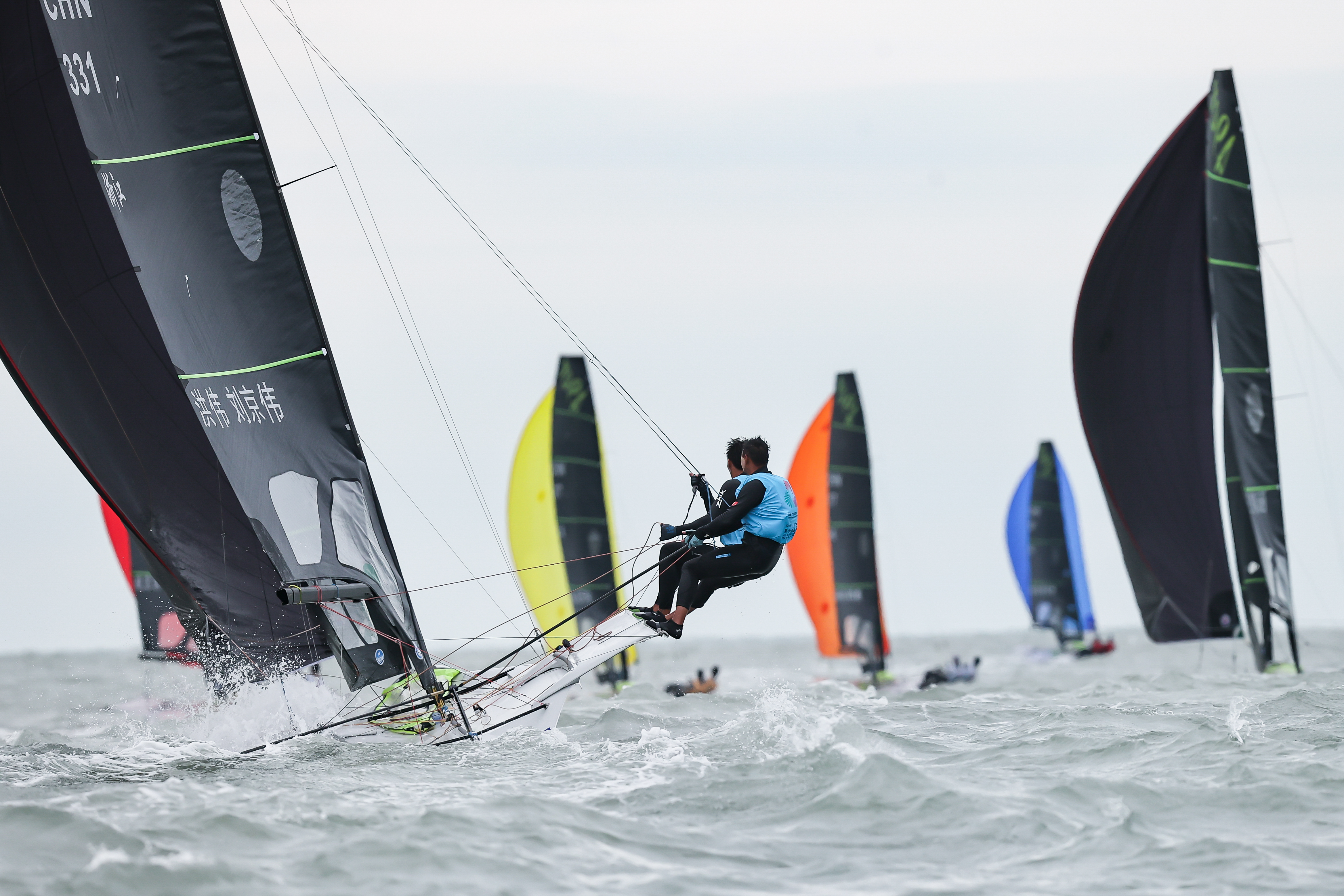 十五运帆船比赛第二阶段赛事开启,运动员们正在海上比拼。十五运会汕尾赛区执委会供图