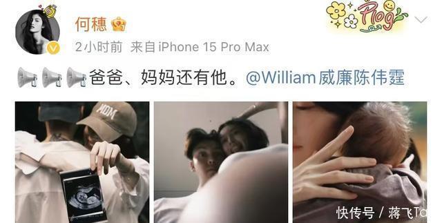 陈伟霆选的三张图片分别是何穗大着肚子拥抱他,何穗的帽子上的“M”字母刚好喝陈伟霆食指上的对应。陈伟霆手中拿着四维B超图,还有一张何穗孕晚期的孕照。最后一张则是陈伟霆抱着儿子的照片,可以说三张图全都是细节,又甜蜜又幸福。