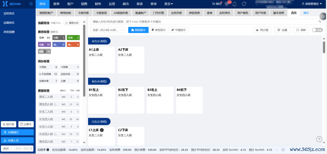 传统PMS按“房间”管理,无法精准统计“单床位”营收与成本;